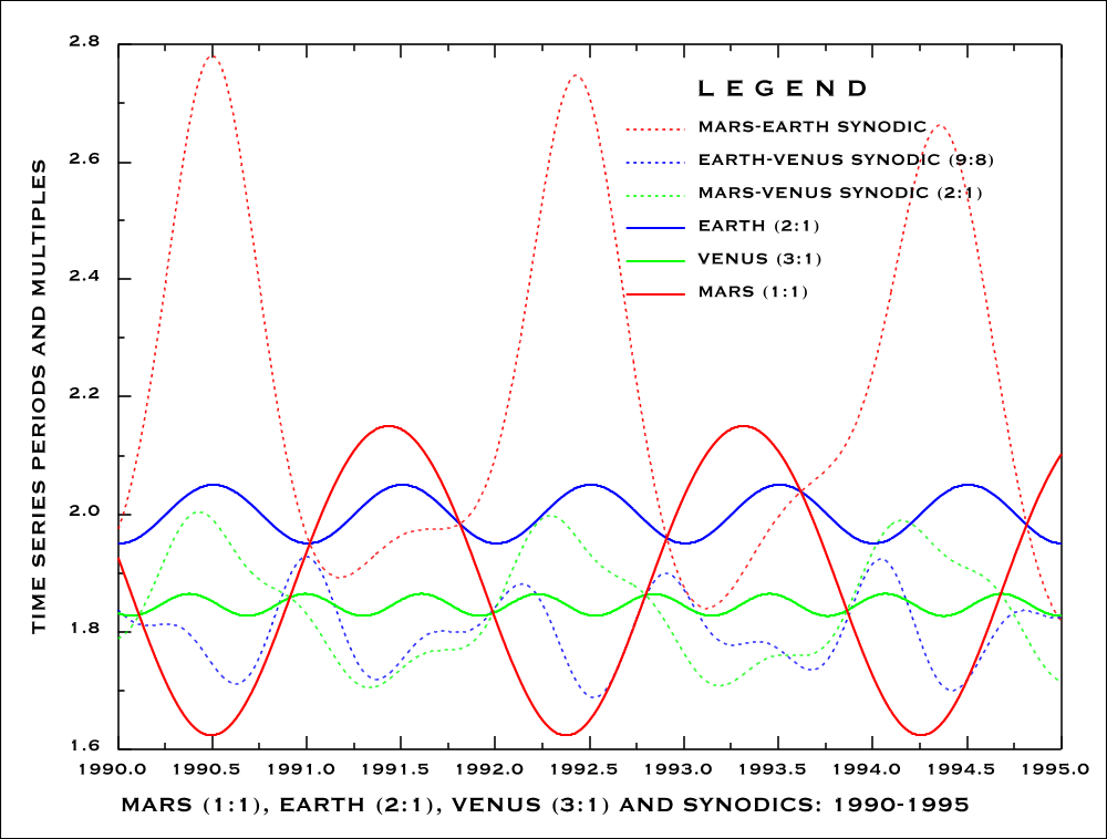 Next, combining all three inferior planets in the same manner including integer and fractional constants we also obtain: